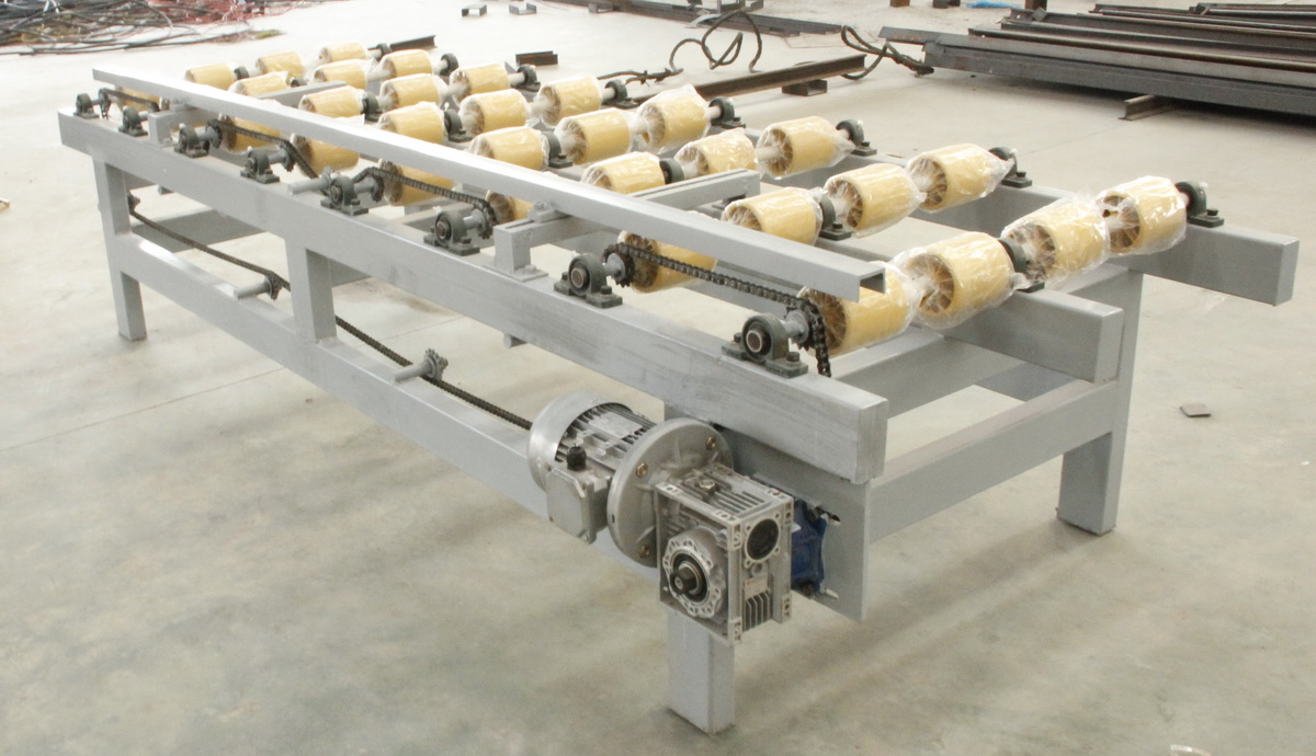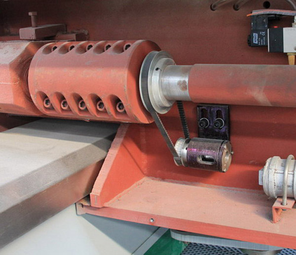 12:滾筒表面滾花處理增加皮帶摩擦力;可減少皮帶打滑,提高板材拋光質(zhì)量,減小不必要的磨料損耗。